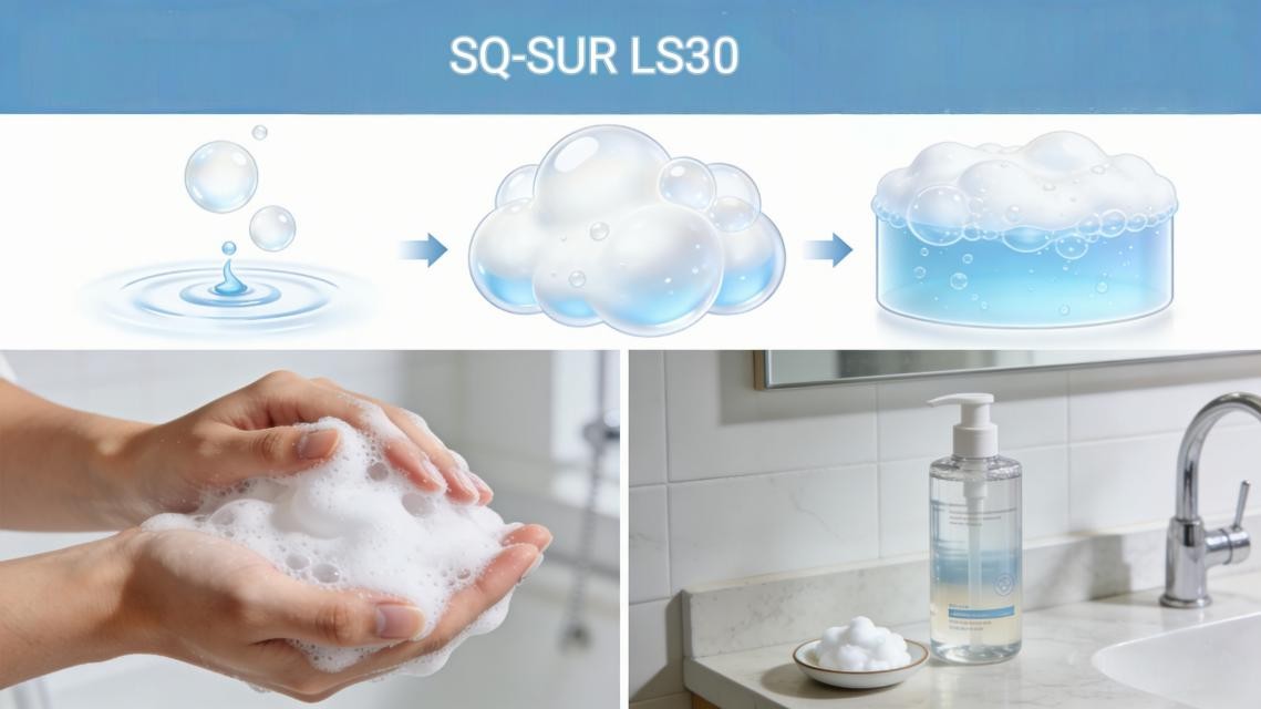 بطل المياه العسر والمياه المالحة: يظل أدائه قويًا حتى في الظروف الصعبة. يوفر SQ-SUR LS30 (Sodium Lauroyl Sarcosinate) مقاومة جيدة لكل من المياه المالحة والمياه الصلبة، مما يمنع تراكم بقايا الصابون ويضمن التنظيف المستمر والرغوة بغض النظر عن جودة المياه المحلية - وهي ميزة كبيرة للعلامات التجارية العالمية.